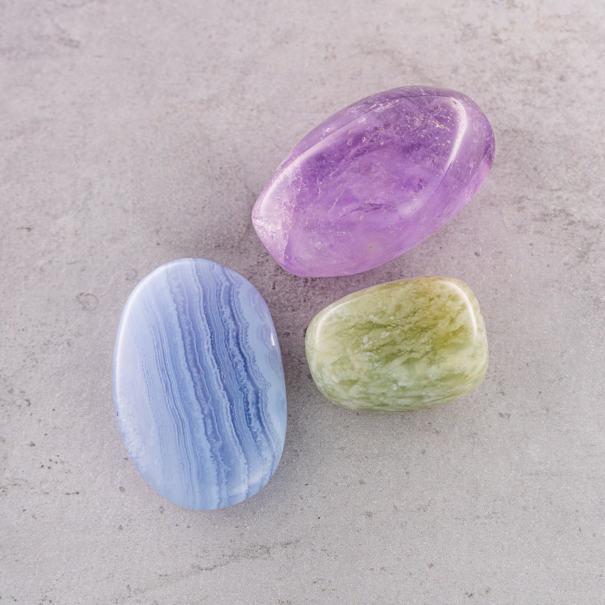 In diesem Beutel findest Du Kristalle, die Dich dabei unterstützen mit Ruhe, Ausdauer und Konzentration eine innere Harmonie zu kreieren. Dein Thema ist vielleicht die Selbsterkenntnis oder Selbstverwirklichung - hier können Dich die Kristalle unterstützen um mit mehr innerer Gelassenheit einen guten Anfang für Deine Reise zu Dir Selbst oder für neue Projekte zu starten. Dabei wirst Du durch Amethyst und Chalcedon darin unterstützt Ruhe und Frieden in Deinem Inneren zu finden. Jade fördert Deine innere Balance. Eine schöne Heilstein Kombi für Yoga und Meditation.